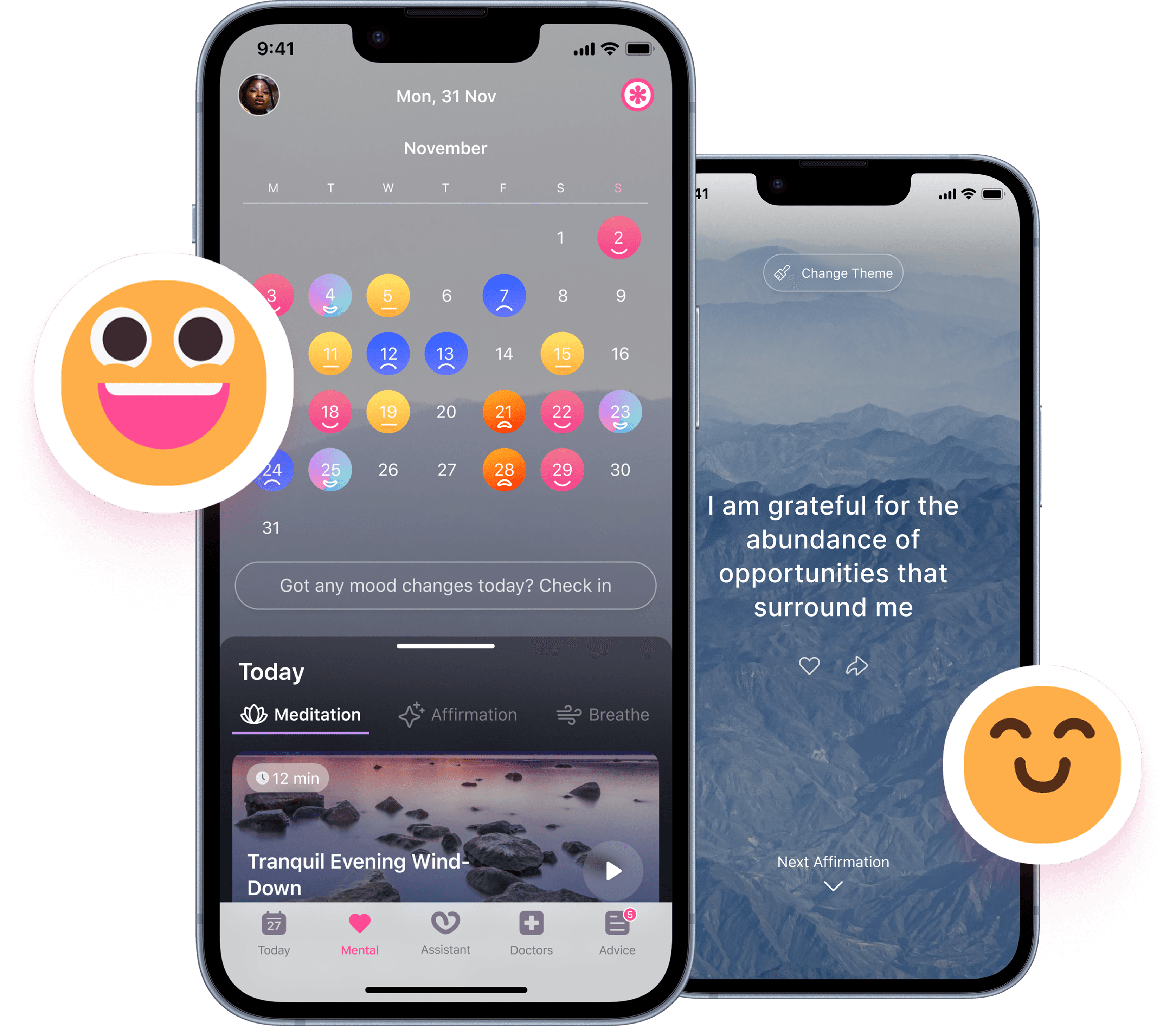 Eshe's Mental Health space includes guided meditations, daily affirmations and breathing exercises. Whenever you need a moment of peace or a push to start your day, Eshe is ready.